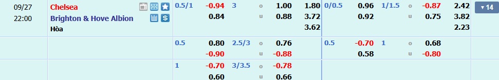 Theo tỷ lệ kèo châu Á, Chelsea chấp 0.5/1 bàn. Đây là mức kèo cho thấy giới chuyên môn vẫn đánh giá cao lợi thế sân nhà của Chelsea. Tuy nhiên, Brighton với phong độ tốt cùng sự tự tin khi từng thắng liên tiếp ở hai trận gần nhất trước đối thủ này vẫn là lựa chọn tiềm năng cho cửa dưới.
